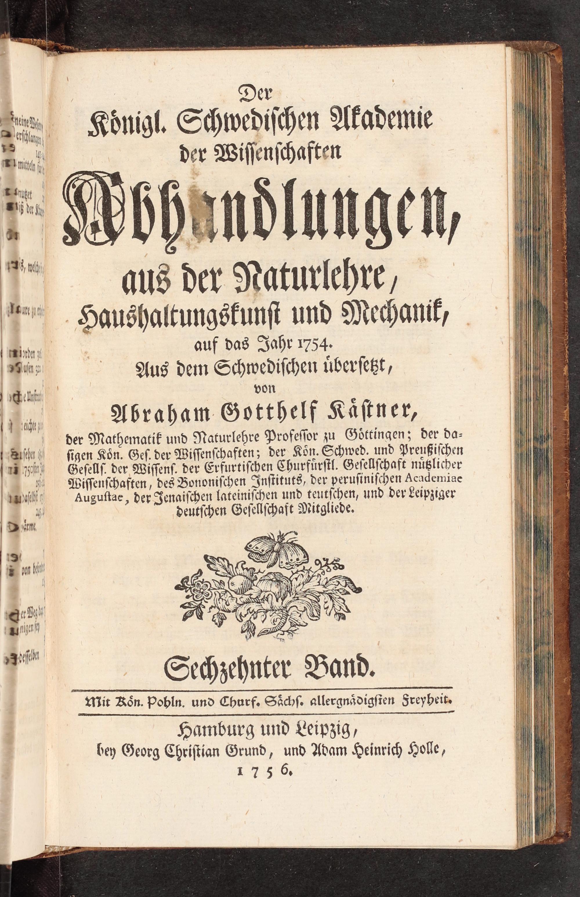 Hamburg und Leipzig, bey Georg Chriſtian Grund, und Adam Heinrich Holle, 1756