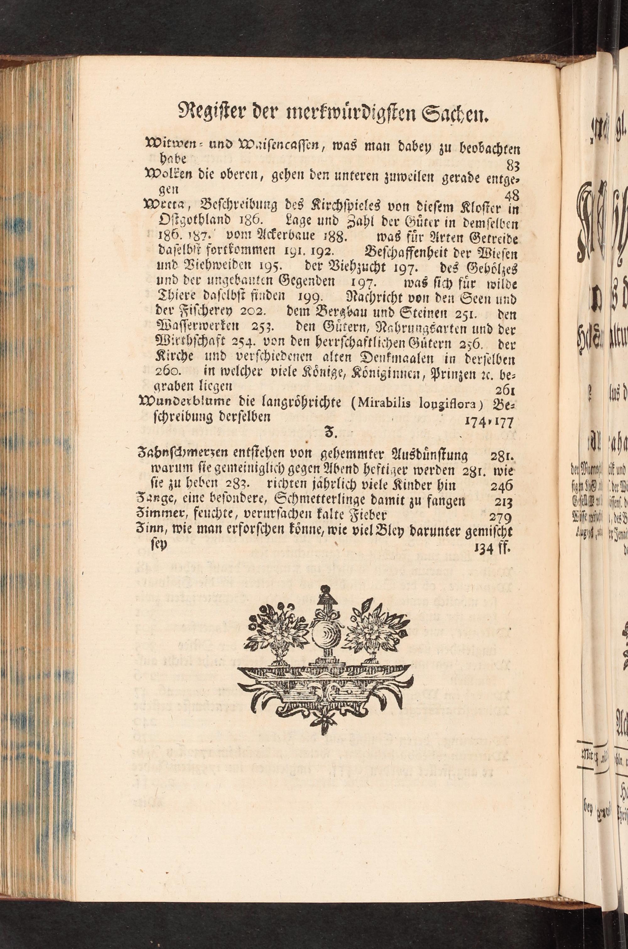 Oſigothland 186. Lage und Zahl der Gürer in demſelben 186. 187- vom Ackerbaue 188. was für Arten Getreide dajelb't fortfommen 191, 192. Beſchaffenheit der Wieſen und Viehweiden 195. der Viehzucht 197. des Gepöslzes und der ungebanten Gegenden 197. was ſich für wilde Thiere daſelbſt finden 199. Nachricht von den Seen und der Fiſcherey 202. dem Bergbau und Steinen 251. den Waſſerwerken 253. den Gütern, Nahrungsarten und der Wirthſchaft 254. von den herrſchaftlichen Gütern 256. der Kirche und verſchiedenen alten Denkmaalen in derſelben 260. in welcher viele Könige, Königinnen, Prinzen 2c. be-