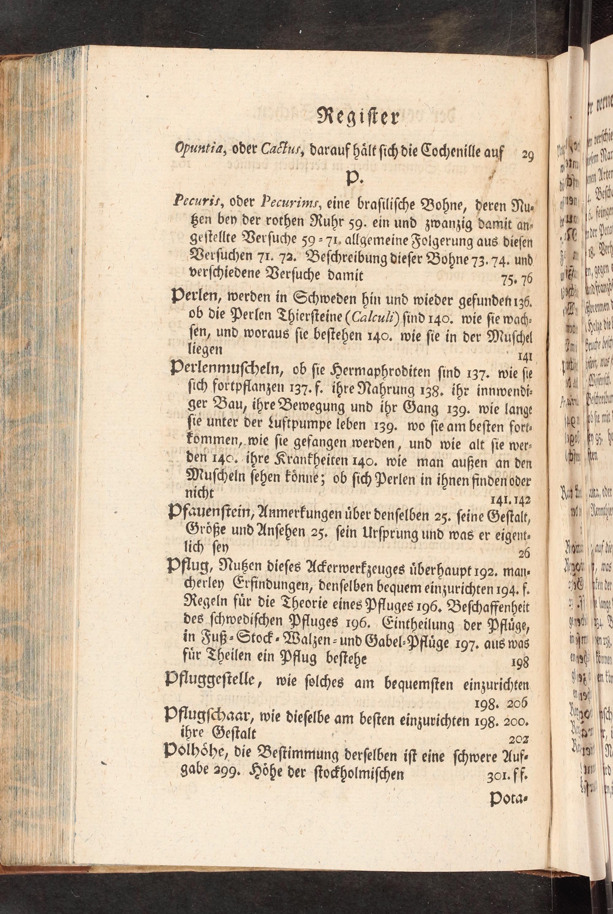 Perlen, werden in Schweden hin und wieder gefunden 136, ob die Perlen Thierſteine(Calcul?) ſind 140. wie fie wach- ſen, und woraus ſie beſtehen 140. wie ſie in der Muſchel liegen