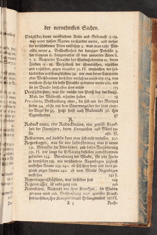 der-braunen 6. feingemachte iſt von zweyerley“Arten 6. 7. 8. Nußen der Potaſche bey Seifenſiedereyen 11. beym Färben 15- 18: Verhältniß der ſchwediſchen, rrigiſchen und raßiſchen, gegen einander 32. ff. imgleichen der hol- ländiſchen und franzöſiſchen"39. wie man beym Calciniren oder Weißbrennen derſelben verfahren müſſe 165-174. von welchem Holze die beſte Potaſche'gebrannt werde166. wie