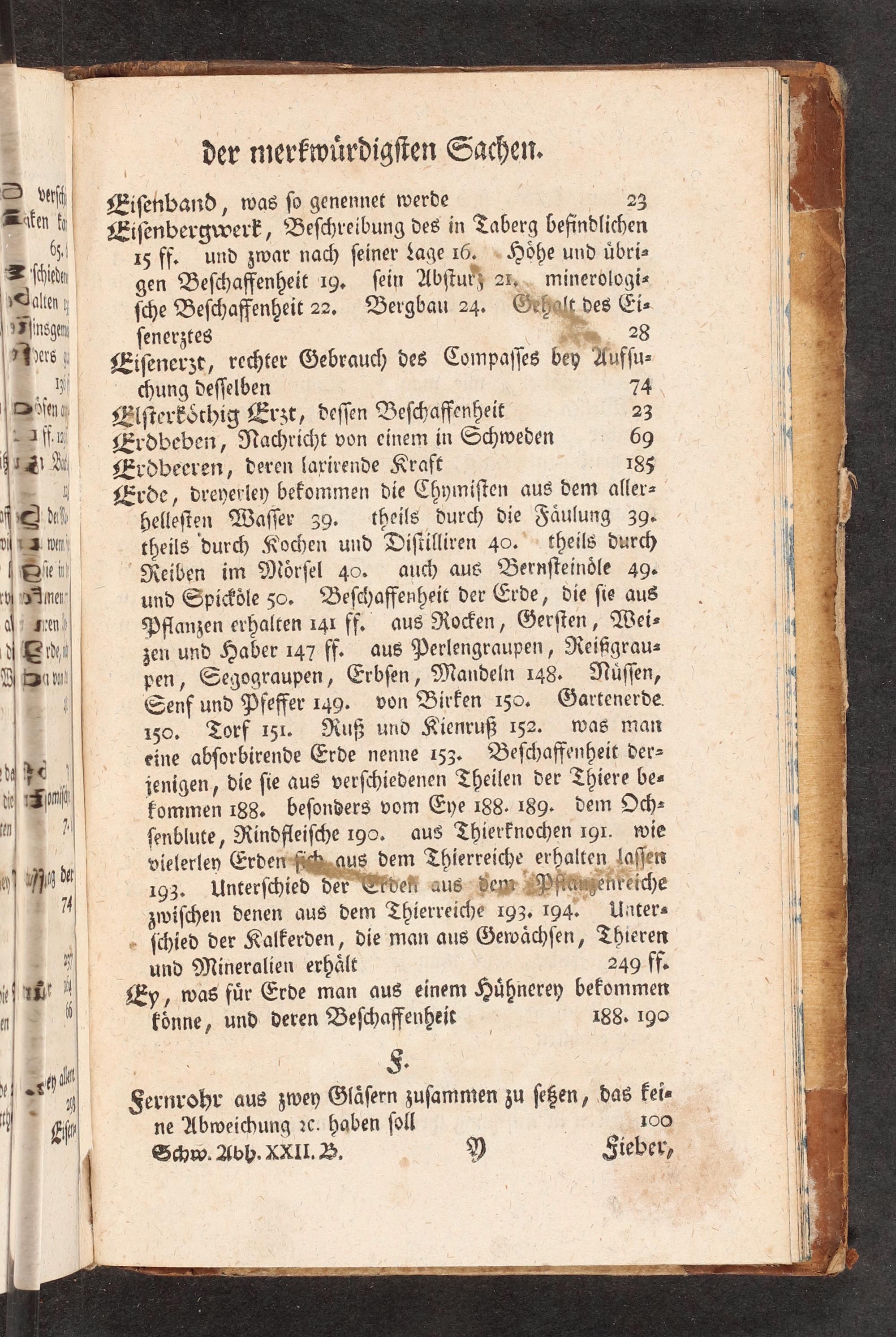 ſenerztes 28 Eiſenerzt, rechter Gebrauch des Compaſſes bey Auſſu- <ung deſſelben 74 Blſterkörhig Erzt, deſſen Beſchaffenheit 23 Erdbeben, Nachricht von einem in Schweden 69 Erdbeeren, deren larirende Kraft 185