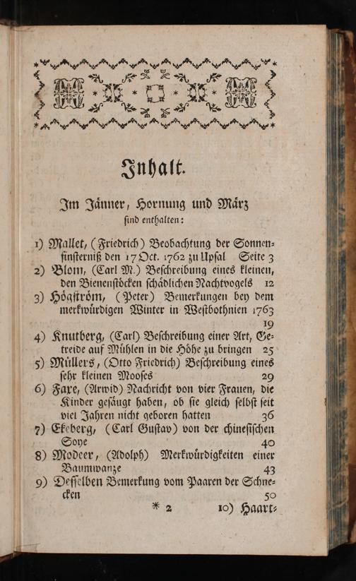 viel Jahren nicht geboren hatten 36 7) Ekeberg,(Carl Guſtav) von der<ineſiſchen ip Soye 40 S8) Modeer,(Adolph) Merkwürdigkeiten einer Bauymwanze 43