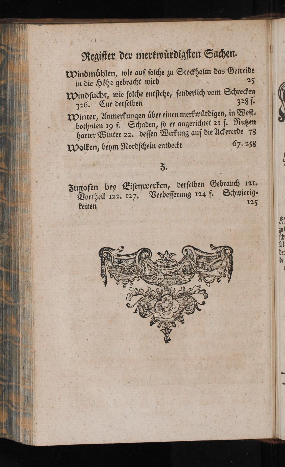 LVindmühlen, wie auf ſolche zu Stockholm das Getreide in die Höhe gebracht wird 4 25 Windſucht, wie ſolche entſtehe, ſonderlich vom Schre>en