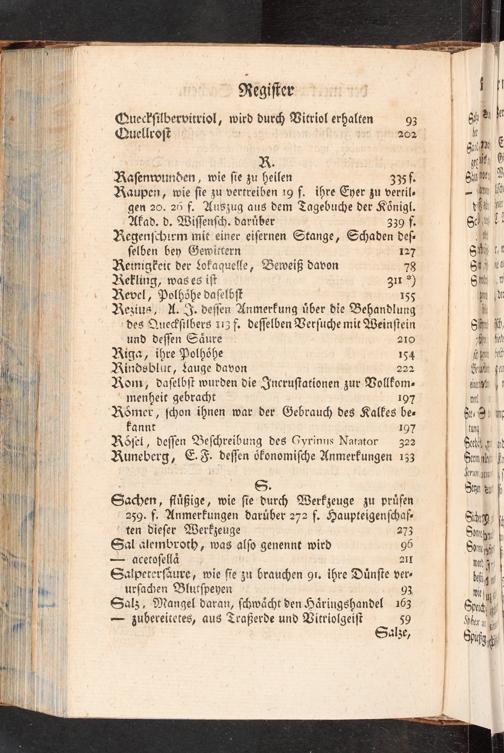 / Akad, d. Wiſſenſch. darüber 339 f. Retenſchirm mit einer eiſernen Stange, Schaden deſ- ſelben bey Gewittern 127 Reinigzkeit der IHE Beweiß davon 78 Rekling, was es iſt 2115 Revel, Polhöhe daſelbſt 155