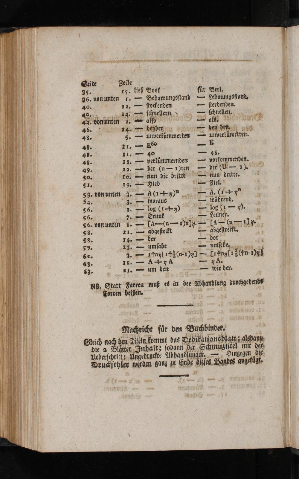 |)|| 36. von unten 1.= Beharrungefiand=- Lehmungsfiapd || 4% 12.=> stodenden== sterbenden. | FT RN SEBMEEN 718 7 schnellern,%...=> schnellen,. 4 410 44. vonunten 2.==> alfy ZI als ien 94) 48» 5.== unverfümmerten==> unverkümetten, ||| 48. 11.= E89-- E 11,0 48 11,,> 40--. 48. 00 48- 38.== verfümmerndets==> vorkommende, WW] 49. 22.== der(u=1)ten=> der(V--' 1% 40 tol== Aun die dritte"==" nun dritte, 51. 1%== Hieb=" Ziel.' 53. vönunten 3.== AG+77)2%== A,(147 0. S4. u 1 3= Woraus-== während. |] 56. 1.= log(1-+7))-- fog(1== 1). | 5 6.„I.== Trunk 1.=> Lainer, 56. vonunten 8:==[A--(n==Dx]y.=>[4=(=7119- S8. 21.== abgesteft== abgestreift 58. 14.== der== dos; 59 x3.== umsahe Sw UND buen uns 55 62» 3% 14a 14E1)7]-[r4npl rn: 1)11 | S3... 13:== A+7yA-- q A. | 63-. 21:== um den== wie der. ] NB. Statt' Farren muß es in der Abhandlutg dur<gehends Sorren beißen, uE