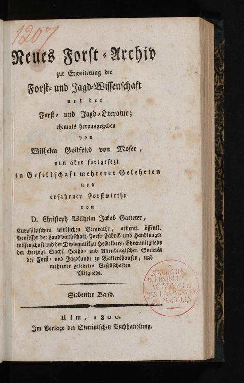 Kurpfälzischem wirklichen Bergrathe, ordentl. dssentl. Professor der Landwirthschaft, Forst Fabrik- und Handlungs? wissenschaft und der Diplomatik zu Heidelberg, Ehrenmitglieds der Herzogl. Sachs. Gotha? und- Altenburgischen Societät des Forst: und Jagdkunde zu Waltershausen/ und mehrerer gelehrten Gesellschaften Mitgliede,