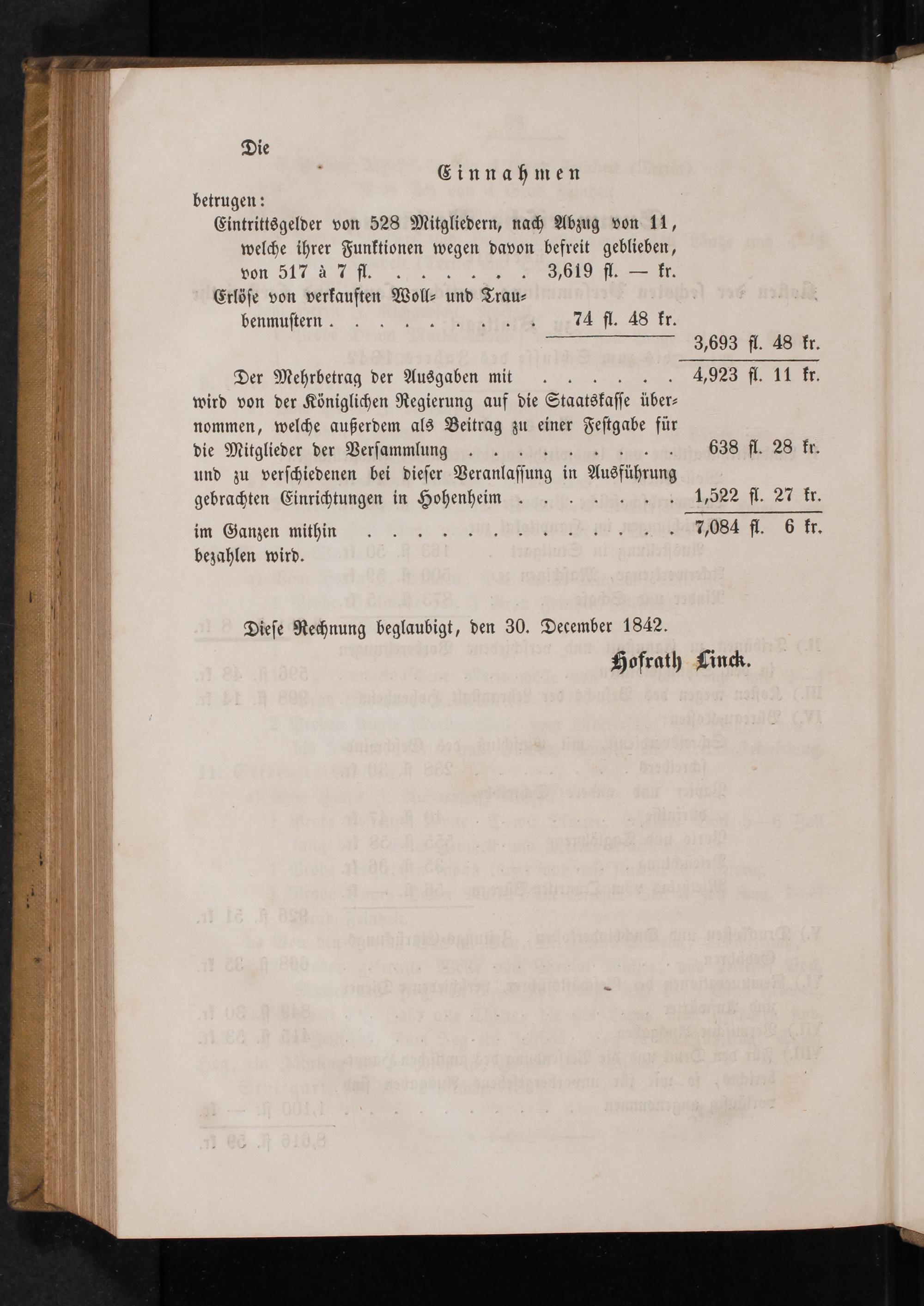 Diese Rechnung beglaubigt, den 30. December 1842. Hofrath