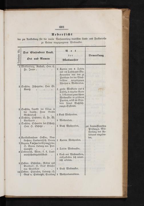 der zur Ausstellung für die vierte Versammlung deutscher Land- und Forstwirthe zu Brünn eingegangenen Wollmuster.