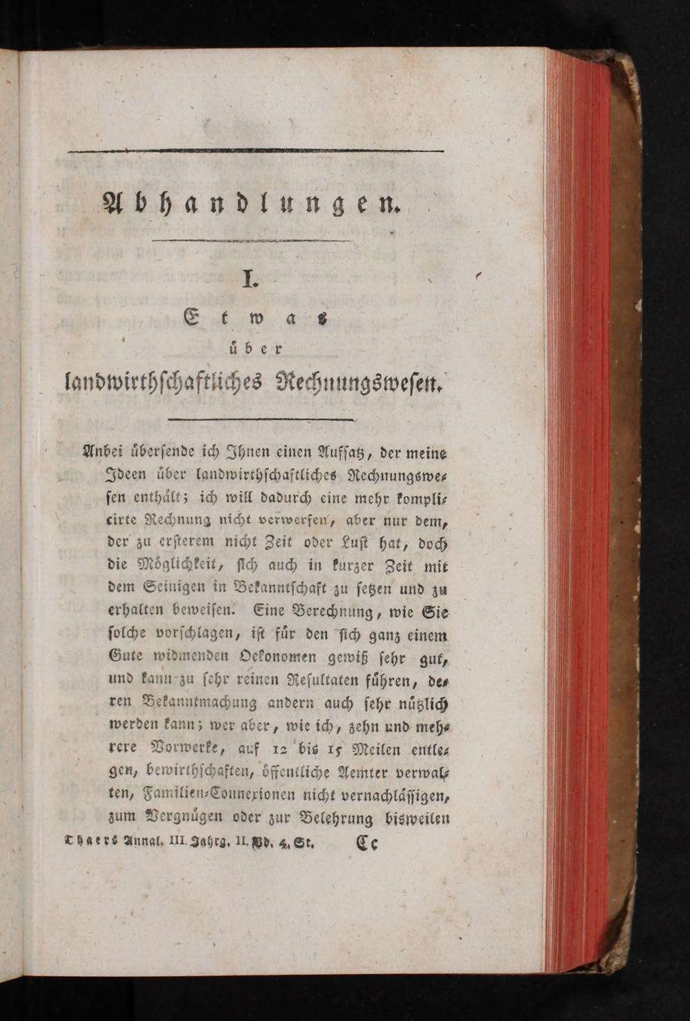 Anbei uͤberſende ich Ihnen einen Aufſatz, der meine Ideen uͤber landwirthſchaftliches Rechnungswe⸗ ſen enthaͤlt; ich will dadurch eine mehr kompli⸗ cirte Rechnung nicht verwerfen, aber nur dem, der zu erſterem nicht Zeit oder Luſt hat, doch