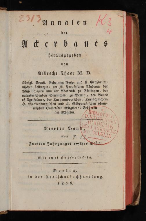 Koͤnigl. Preuß. Geheimen Rathe und K. Großbritta⸗ niſchen Leibarzte; der K. Preußiſchen Akademie der Wiſſenſchaften und der Akademie zu Göttingen, der naturforſchenden Geſellſchaft zu Berlin, des Board of Agrikulture, der Kurhannoͤverſchen, Kurſaͤchſiſchen, H. Mecklenburgiſchen und K. Suͤdpreußiſchen ökono⸗ miſchen Societaͤten Mitgliede; Erbherkn auf Mogelin.