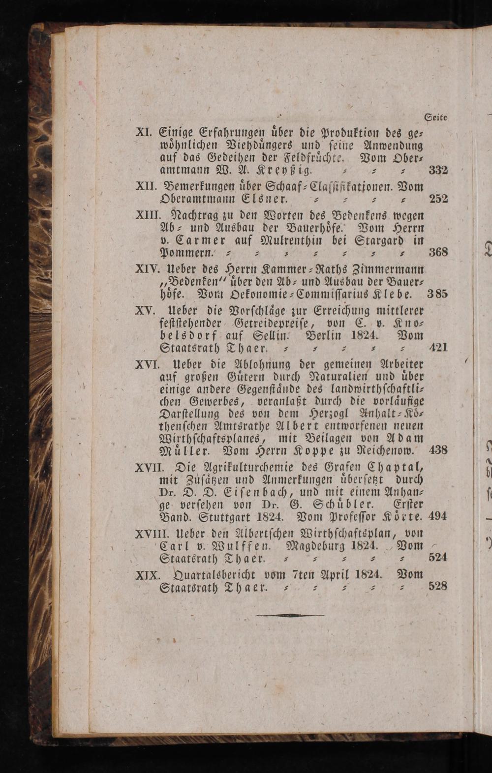 Staatsrath Thaer. ⸗ ⸗ 2 ⸗ 524 XIX. Quartalsbericht vom 7ten avri 1824. Vom Staatsrath Thaer. ⸗ ⸗ ⸗ ⸗ 528