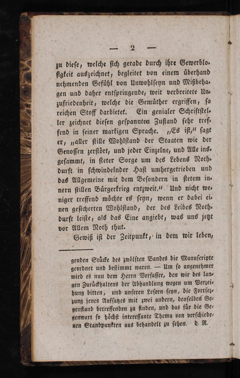 genden Stuͤcke des zwoͤlften Bandes die Manuſeripte geordnet und beſtimmt waren.— Um ſo angenehmer wird es nun dem Herrn Verfaſſer, den wir des lan⸗ gen Zuruͤckhaltens der Abhandlung wegen um Verzei⸗ hung bitten, und unſeren Leſern ſeyn, die Fortſez⸗ zung jenes Aufſatzes mit zwei andern, denſelben Ge⸗ genſtand betreffenden zu finden, und das fuͤr die Ge⸗ genwart ſo hoͤchſt intereſſante Thema von verſchiede⸗ nen Standpunkten aus behandelt zu ſehen. d. R.