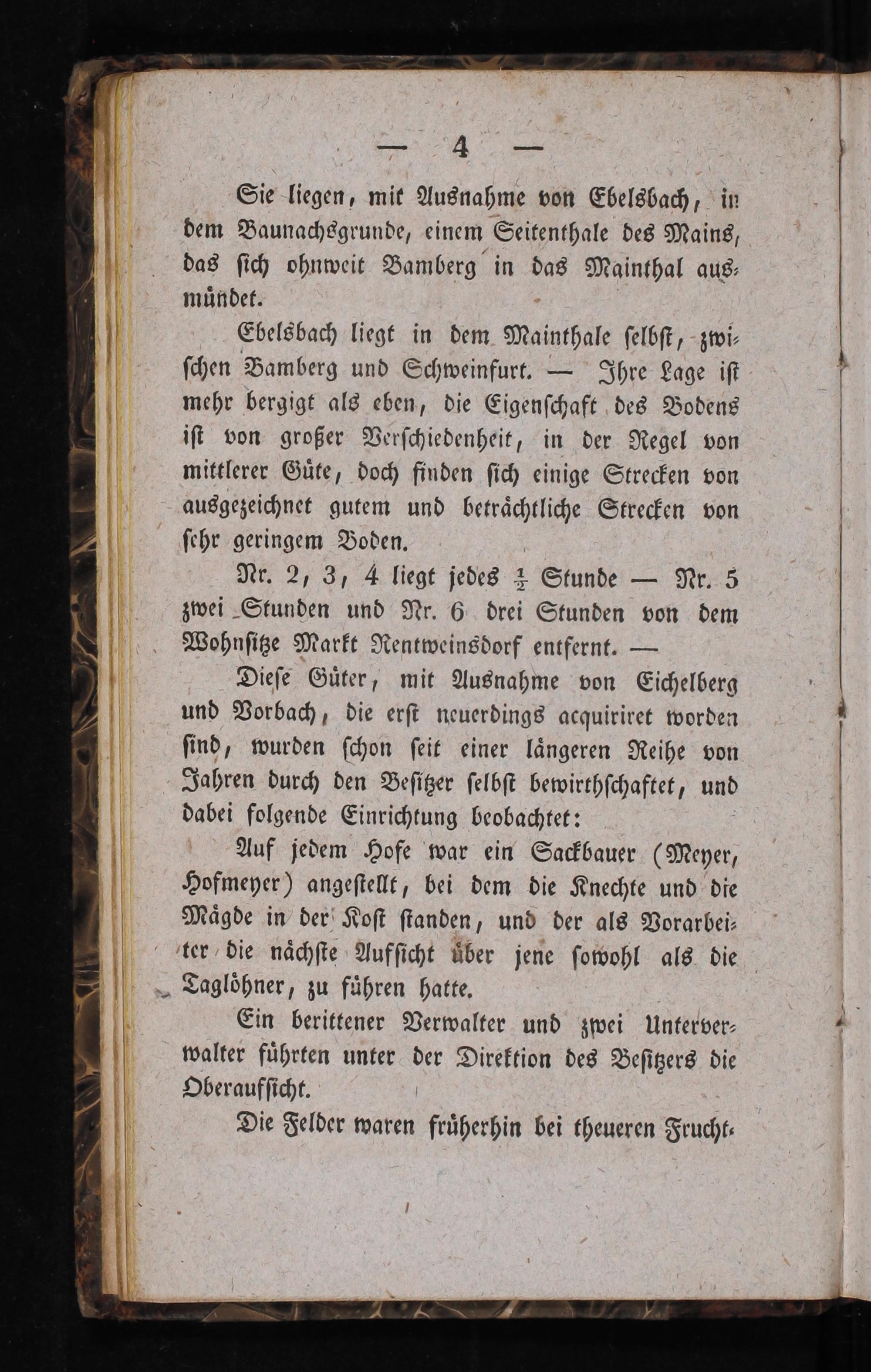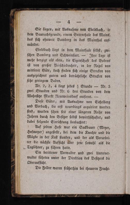 Dieſe Guͤter, mit Ausnahme von Eichelberg und Vorbach, die erſt neuerdings acquiriret worden ſind, wurden ſchon ſeit einer laͤngeren Reihe von Jahren durch den Beſitzer ſelbſt bewirthſchaftet, und dabei folgende Einrichtung beobachtet: