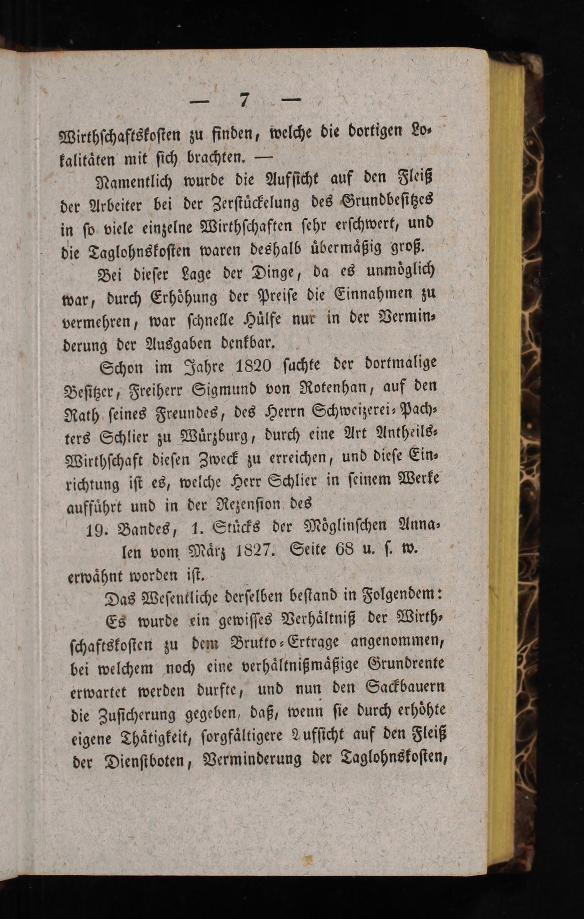 Schon im Jahre 1820 ſachte der dortmalige Beſitzer, Freiherr Sigmund von Rotenhan, auf den Rath ſeines Freundes, des Herrn Schweizerei⸗Pach⸗ ters Schlier zu Wuͤrzburg, durch eine Art Antheils⸗ Wirthſchaft dieſen Zweck zu erreichen, und dieſe Ein⸗ richtung iſt es, welche Herr Schlier in ſeinem Werke auffuͤhrt und in der Rezenſion des