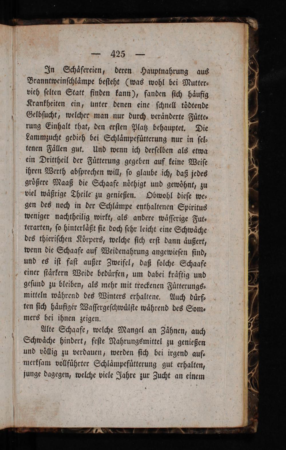 Alte Schaafe, welche Mangel an Zaͤhnen, auch Schwaͤche hindert, feſte Nahrungsmittel zu genießen und voͤllig zu verdauen, werden ſich bei irgend auf⸗ merkſam vollfuͤhrter Schlaͤmpefuͤtterung gut erhalten, junge dagegen, welche viele Jahre zur Zucht an einem