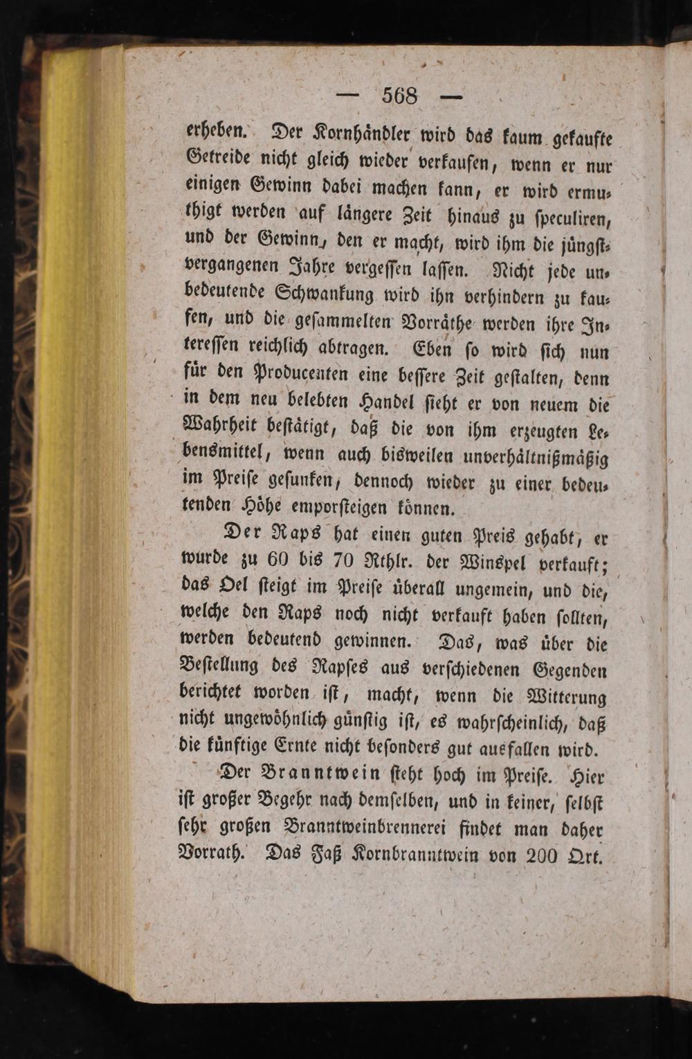 Der Raps hat einen guten Preis gehabt, er wurde zu 60 bis 70 Rthlr. der Winspel verkauft; das Oel ſteigt im Preiſe uͤberall ungemein, und die, welche den Raps noch nicht verkauft haben ſollten, werden bedeutend gewinnen. Das, was uͤber die Beſtellung des Rapſes aus verſchiedenen Gegenden berichtet worden iſt, macht, wenn die Witterung nicht ungewoͤhnlich guͤnſtig iſt, es wahrſcheinlich, daß die kuͤnftige Ernte nicht beſonders gut ausfallen wird.