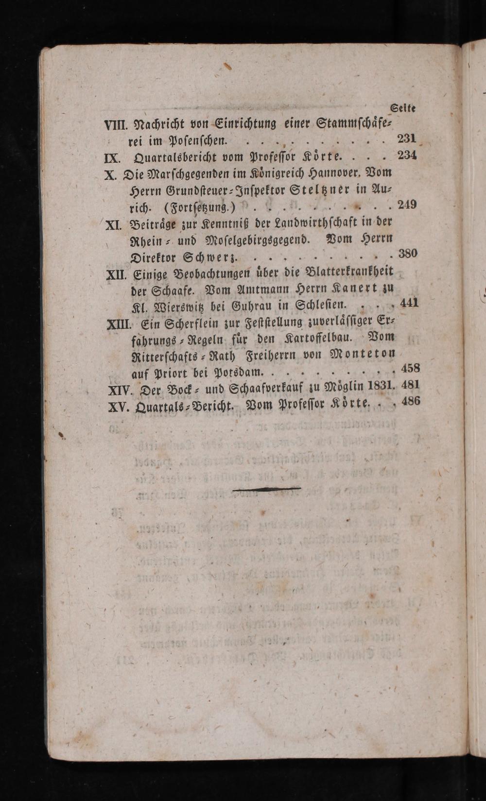 VIII. Nachricht von Einrichtung einer Srunmiiife⸗ rei im Poſenſchen..... 231 IX. Quartalsbericht vom Profeſfor K Köͤrte.:. 234