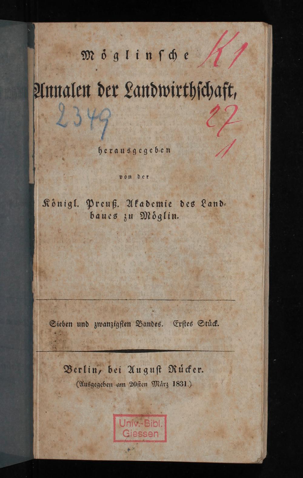 Berlin, bei Auguſt Ruͤcker. (Ausgegeben am 20ſten Maͤrz 1831.)