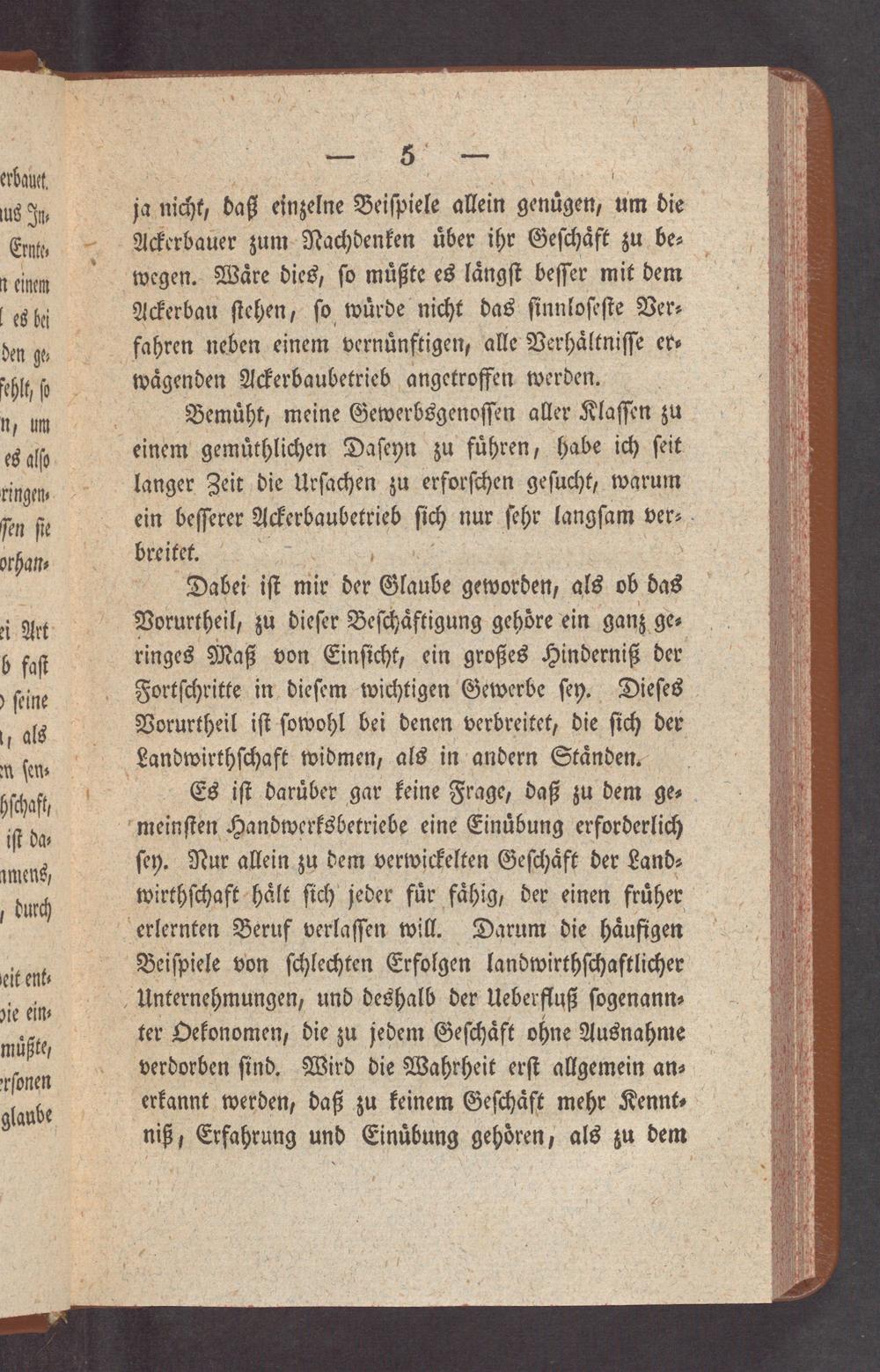 Bemuͤht, meine Gewerbsgenoſſen aller Klaſſen zu einem gemuͤthlichen Daſeyn zu fuͤhren, habe ich ſeit langer Zeit die Urſachen zu erforſchen geſucht, warum ein beſſerer Ackerbaubetrieb ſich nur ſehr langſam ver⸗ breitet. b