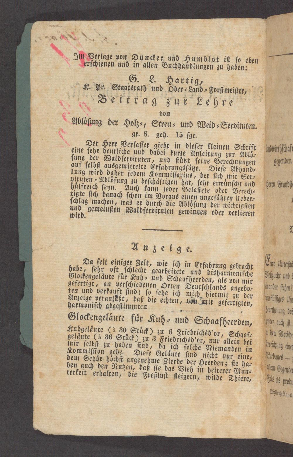 Der Herr Verfaſſer giebt in dieſer kleinen Schrift eine ſehr deutliche und dabei kurze Anleitung zur Abloͤ⸗ ſung der Waldſervituten, und ſtuͤtzt ſeine Berechnungen auf ſelbſt ausgemittelte Erfahrungsſaͤtze. Dieſe Abhand⸗ lung wird daher jedem Kommiſſaxius, der ſich mit Ser⸗ pituten⸗Abloͤſung zu beſchaͤftigen hat, ſehr erwuͤnſcht und huͤlfreich ſeyn. Auch kann jeder Belaſtete oder Berech⸗ tigte ſich danach ſchon im Voraus einen ungefaͤhren Ueber⸗ ſchlag machen, was er durch die Abloͤſung der wichtigſten ued gemeinſten Waldſervituten gewinnen oder verlieren wird.