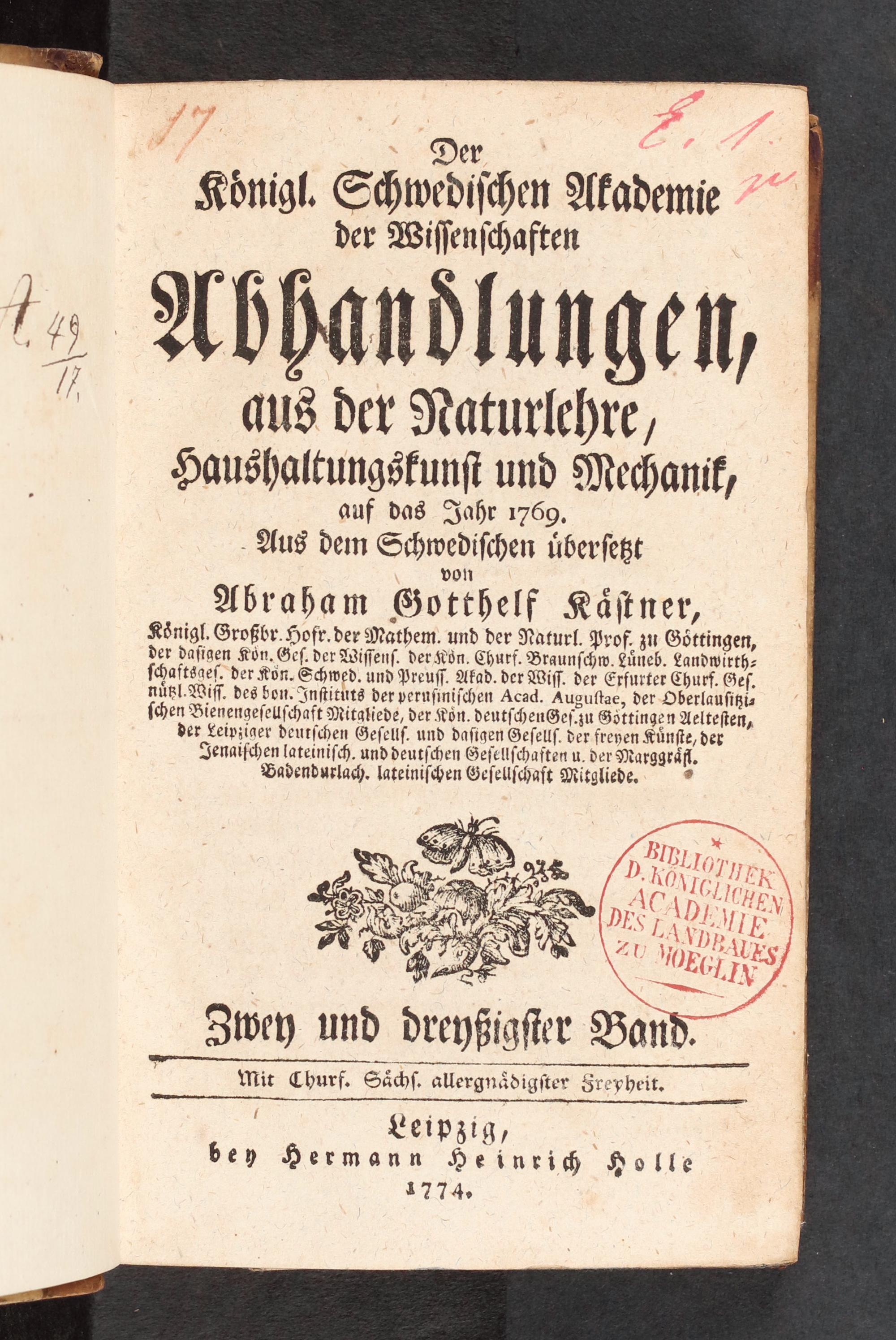 Der Königl. Schwedischen Akademie der Wissenschaften neue Abhandlungen aus der Naturlehre, Haushaltungskunst und Mechanik