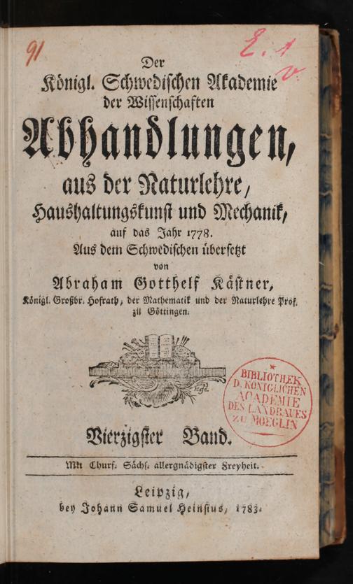 Der Königl. Schwedischen Akademie der Wissenschaften neue Abhandlungen aus der Naturlehre, Haushaltungskunst und Mechanik