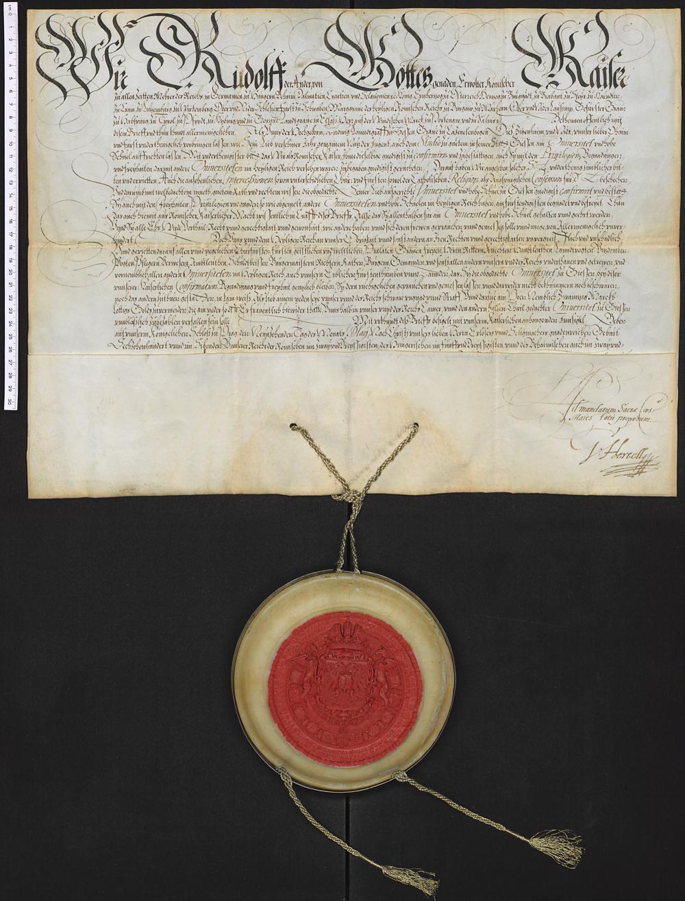 Universitätsarchiv Gießen, Privileg Kaiser Rudolf II. zur Errichtung der Universität Gießen