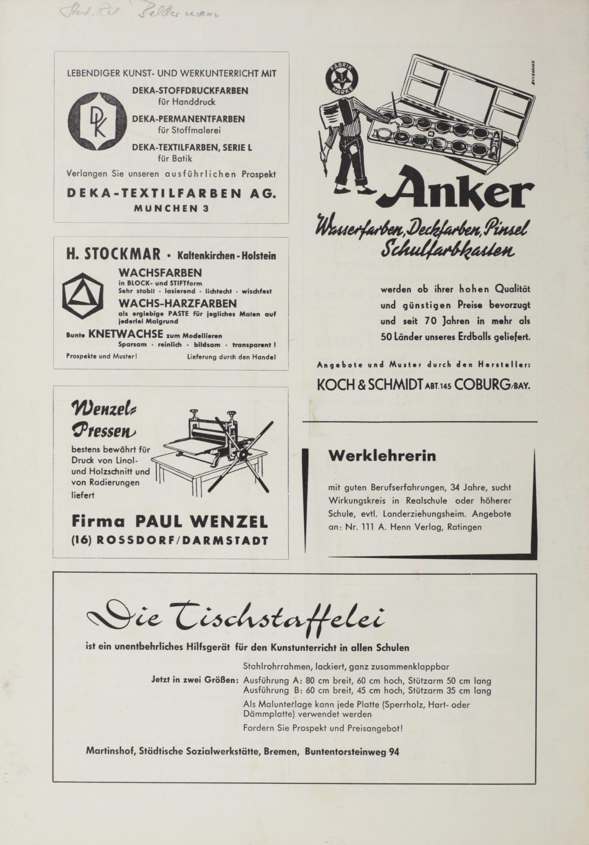 Kunst- und Werkerziehung. 1960-1964