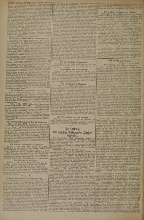 -ondon, 1. Jan. (WTB. Nickitanttlich) Meldimg des Reuter scheu Biweaus. Tue P. and O.-Linie erhielt die Nachricht von der Admrralrtät, daß die „Persia" torpediert wurde.