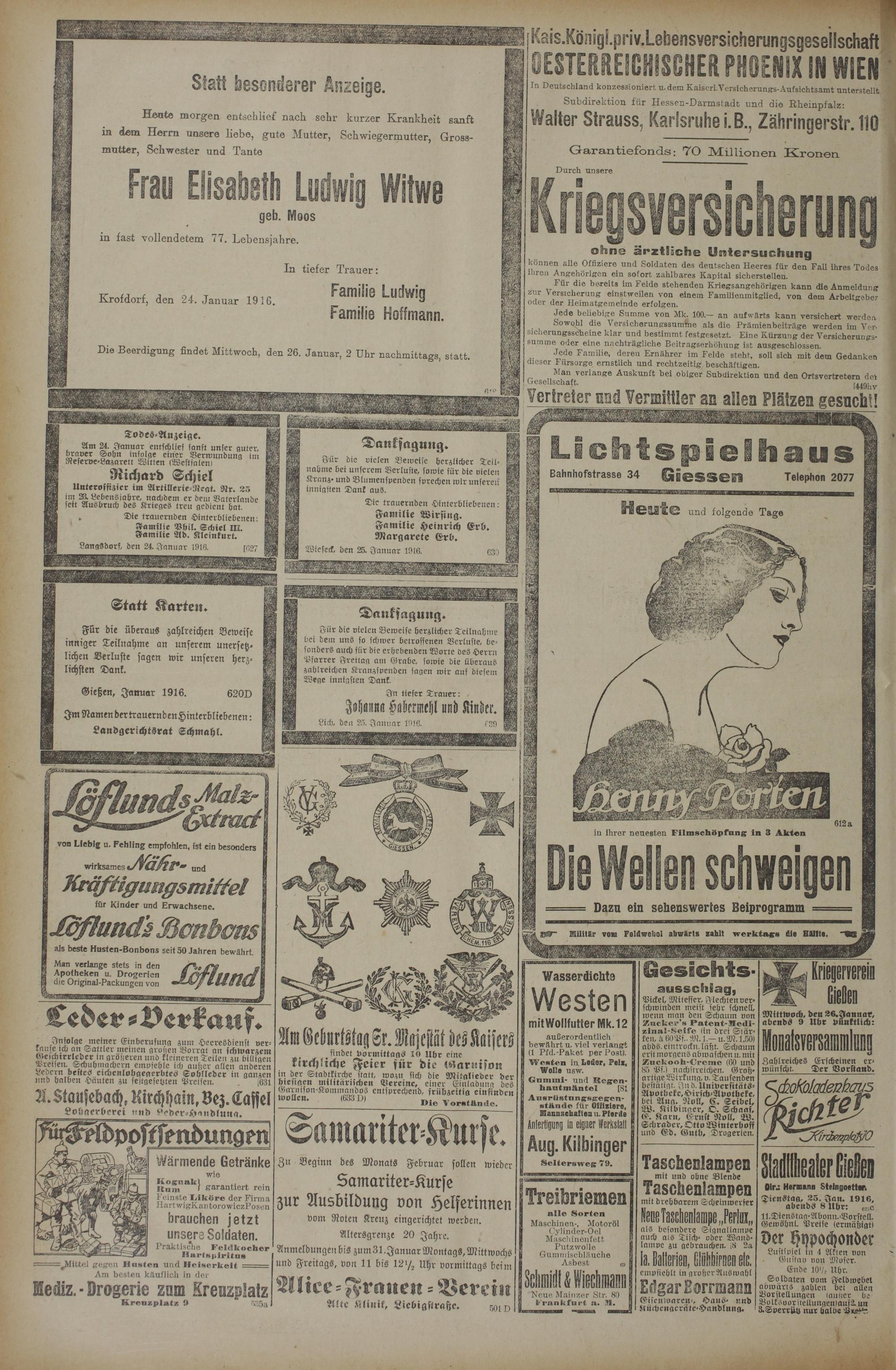 Dienstag, 25. Jan. 1916, abends 8 Ubr: 62i c
