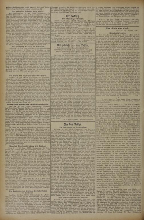 Als wir in der vergangenen Woche Kaisers Geburtstag feierten, da hat wohl auch mancher wieder Abbitte geleistet, unserem Kaiser. Denn wer hätte jetzt nicht erkannt, welch ein Glück es für uns ist, daß ein echter, treuer, deutscher, frommer Mann an der Spitze unseres Volkes steht? Denn die Geschichte dieses Krieges hat uns auf der anderen Seite ja auch jammervolle, unredliche und nrchtswürdige Regenten gezeigt, und daß das, was ihren Völkern daraus entspringt, dem entspricht, was diese Fürsten in ihrem Inneren sind. Aber unser Volk empfängt Gutes von seinem Kaiser und kann Gutes von ihm lernen. Durch den Krieg ist auch hier das gegenseitige Verstehen größer geworden.
