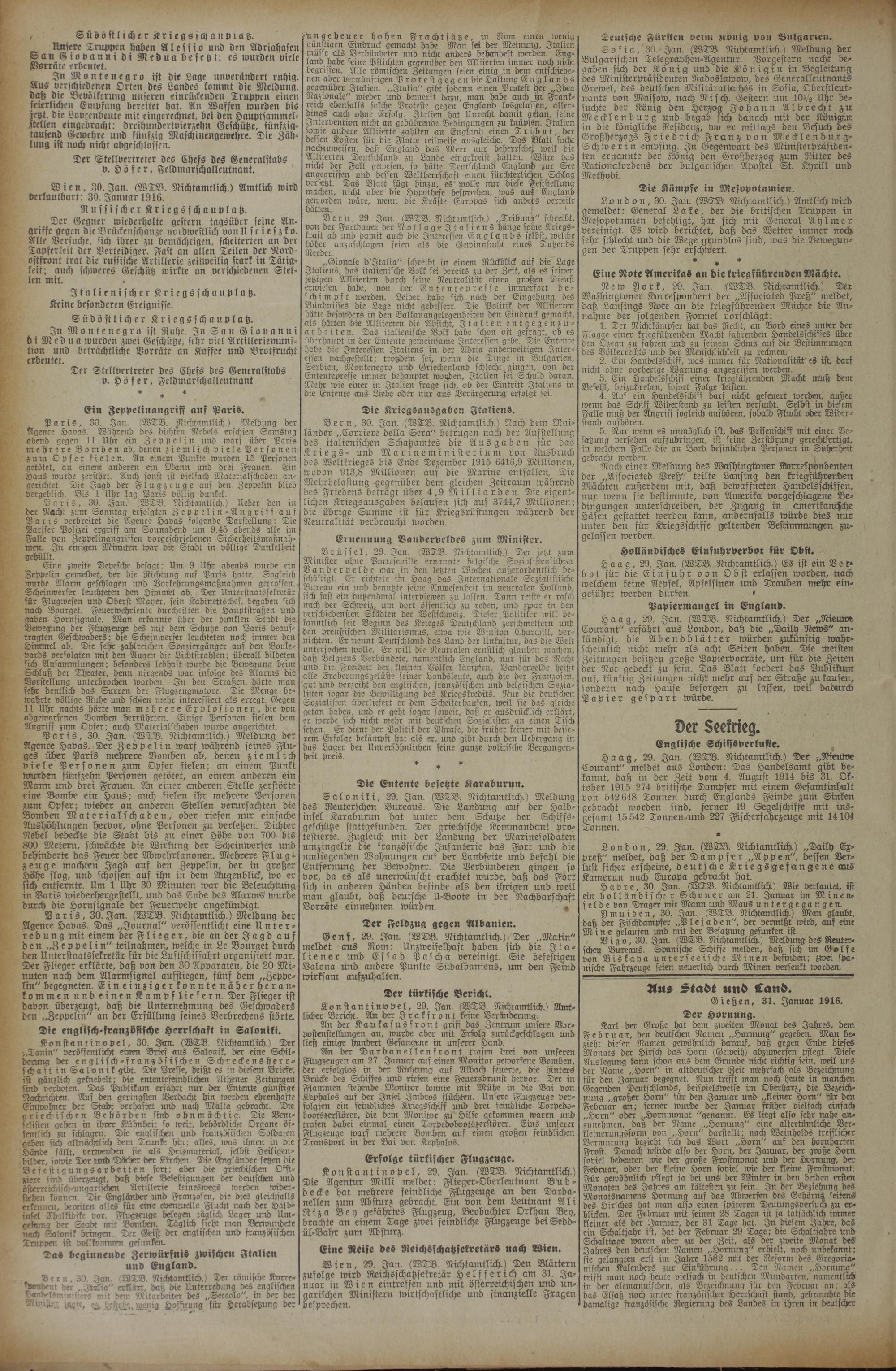 Wien. 30. Jan. (WTB. Nichtamtlich.) Amtlich wird Verlautbart: 30. Januar 1916.