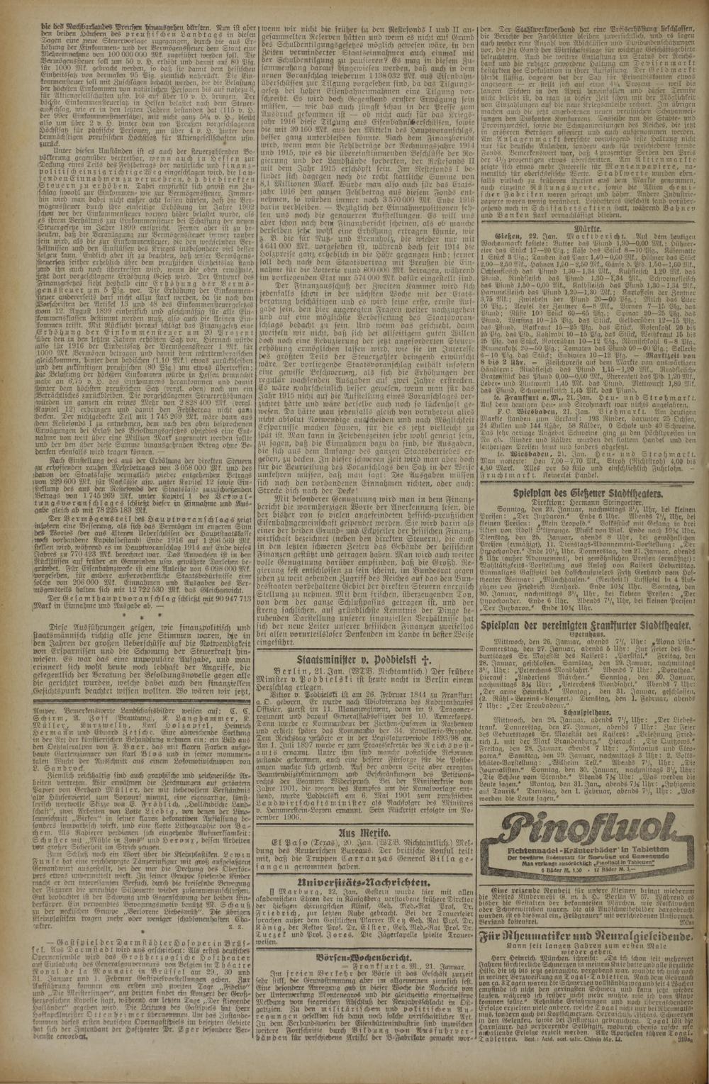 = Frankfurt a. M., 21. Januar.