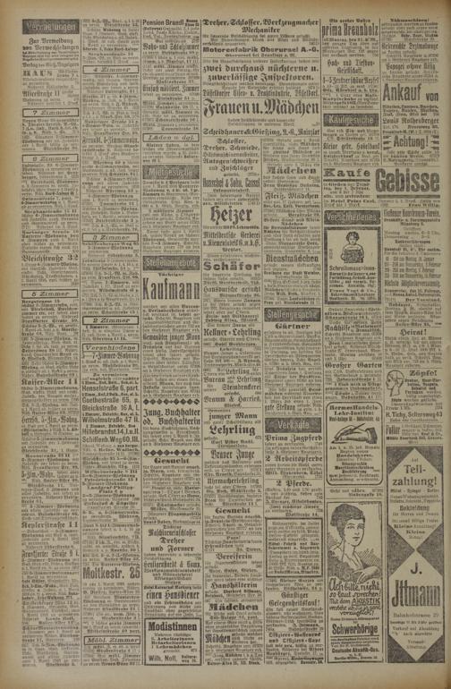 Gründl.Unterricht i Weifi- nähenu.Flickenwirderteilt. Schanzenstrahe 16 1. 073^8