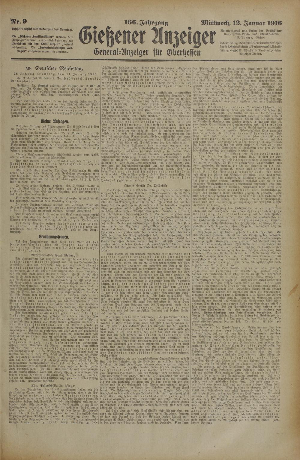 Rotatioirsdruck und/Verlag der Brühl'schen Universitäts - Buch- und Steindruckerei. R. Lange, Gießen.