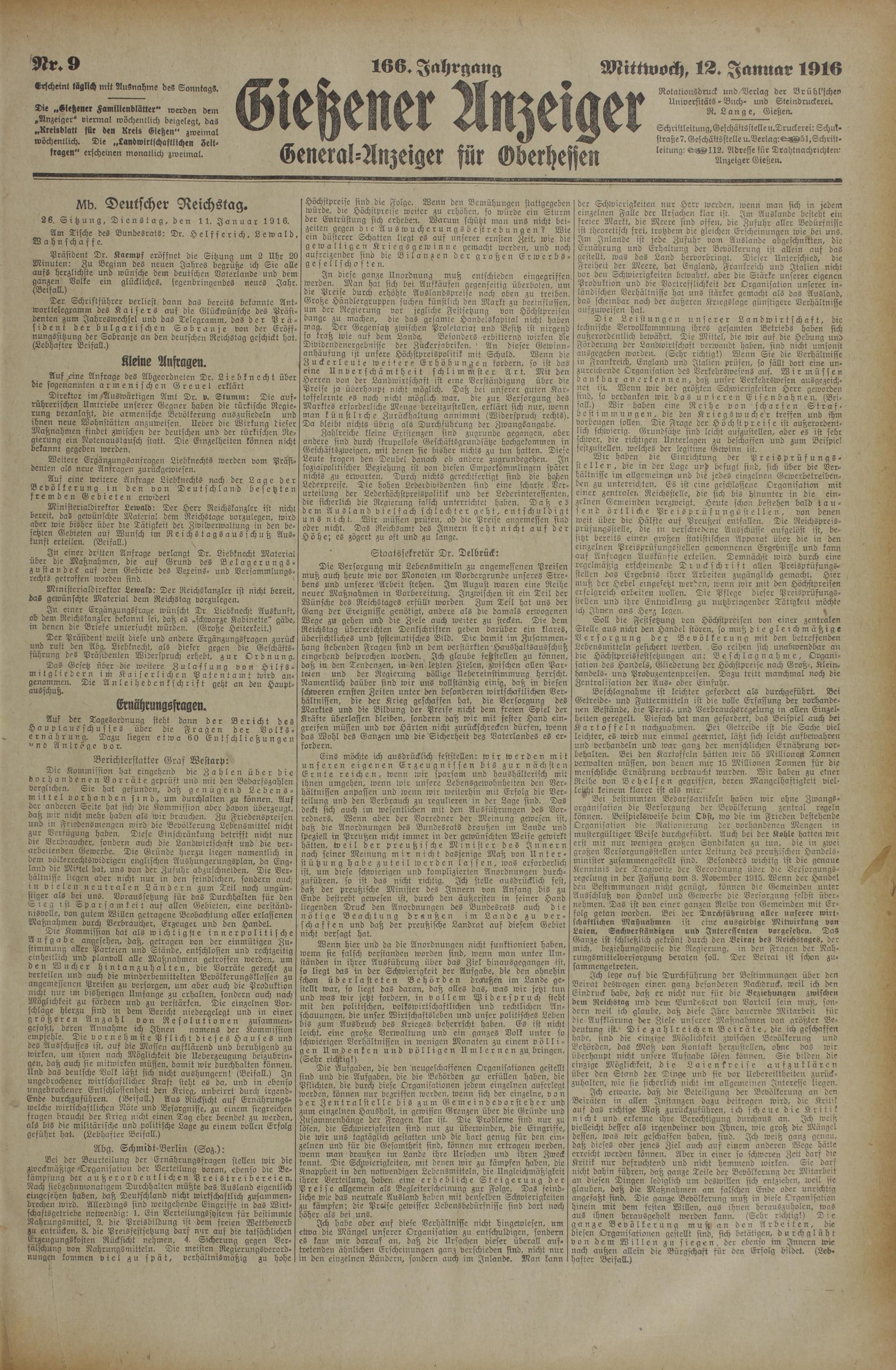 Mittwoch, 12. Januar 1916