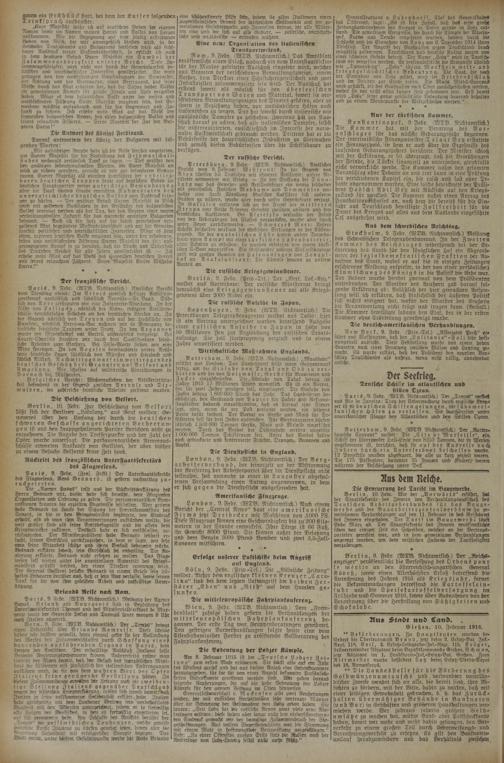 Berlin, 9. Febr. (WTB. Nichtamtlich.) Der „Reichs^ anzeiger" veröffentlicht die Verleihung des Ordens pour le merite an den österreich isch-ungarischen General Köveß, sowie einen Allerhöchsten Erlaß betreffend die Anrechtrung des Jahres 1916 als Kriegsjahr, ferner die Bekanntmachungen betreffend die Kartoffeleinfuhr und die Speisekartoffelversorgung nn Frühjahr und Sommer 1916, sowie Wer Ausnahmen von der Verordnung über die Herstellung von Süßigkeiten und Schokolade.