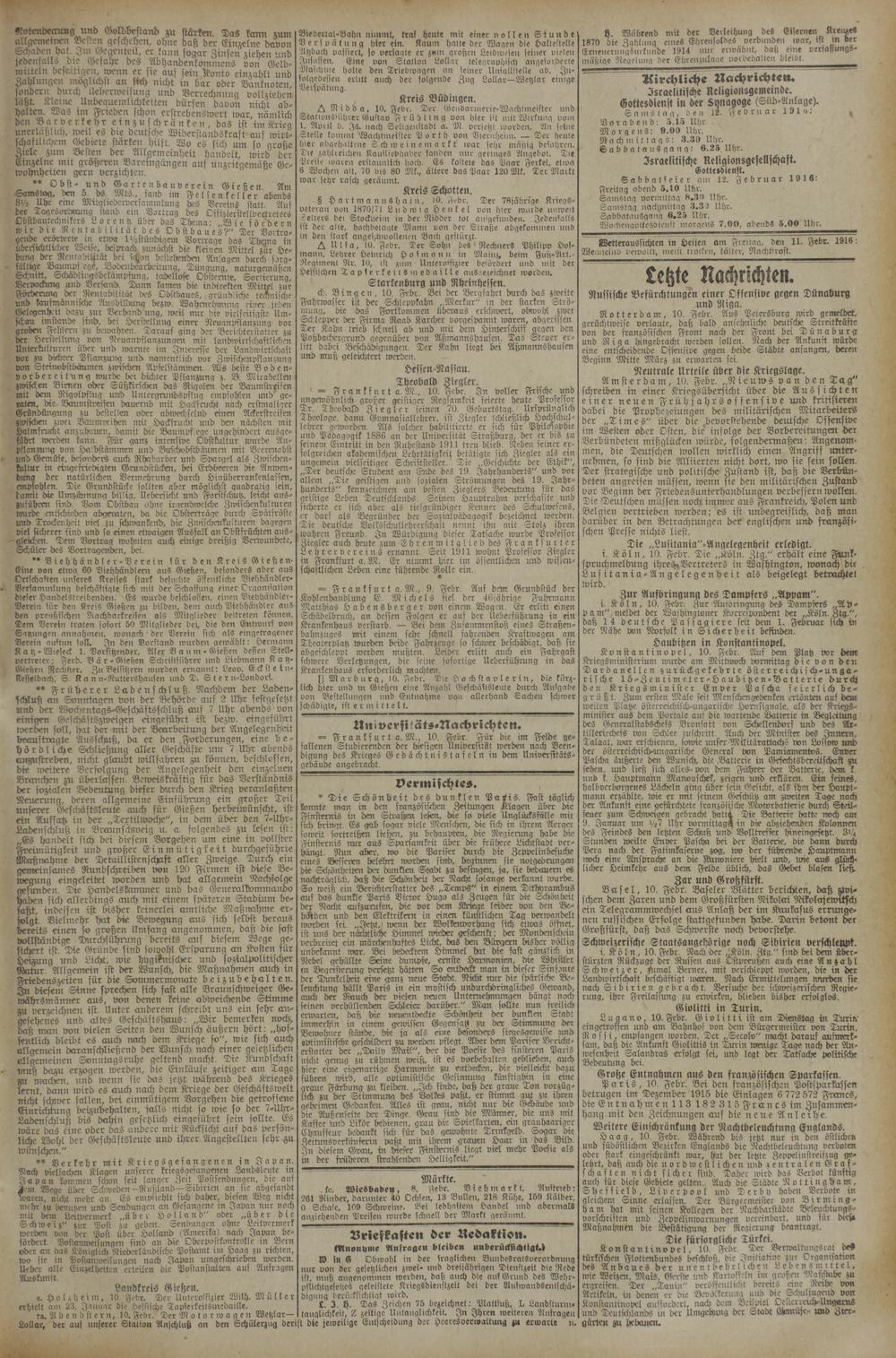 Samstag, deil 12 . Februar 191t>: Vorabend: 5.15 Uhr- Morgens: 9.00 Uhr.
