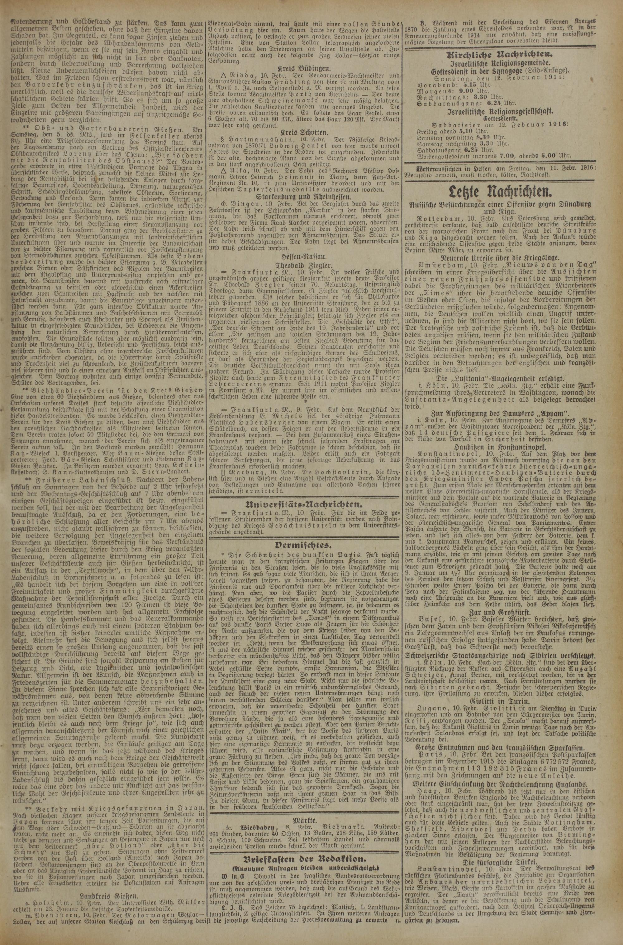 — Frankfurt a. M., 10. Febr. Für die im Felde gefallenen Studierenden der hiesigen Universität werden nach Beendigung des Krieges Gedächtnistafeln in dem Universitätsgebäude angebracht.