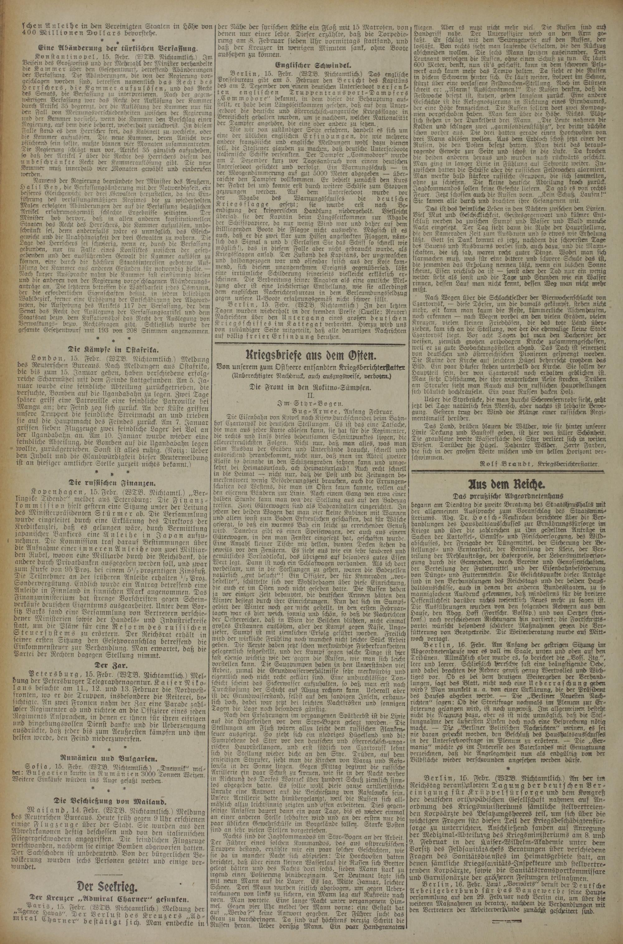 15. Febr. (WTB. Nichtamtlich.) Ä