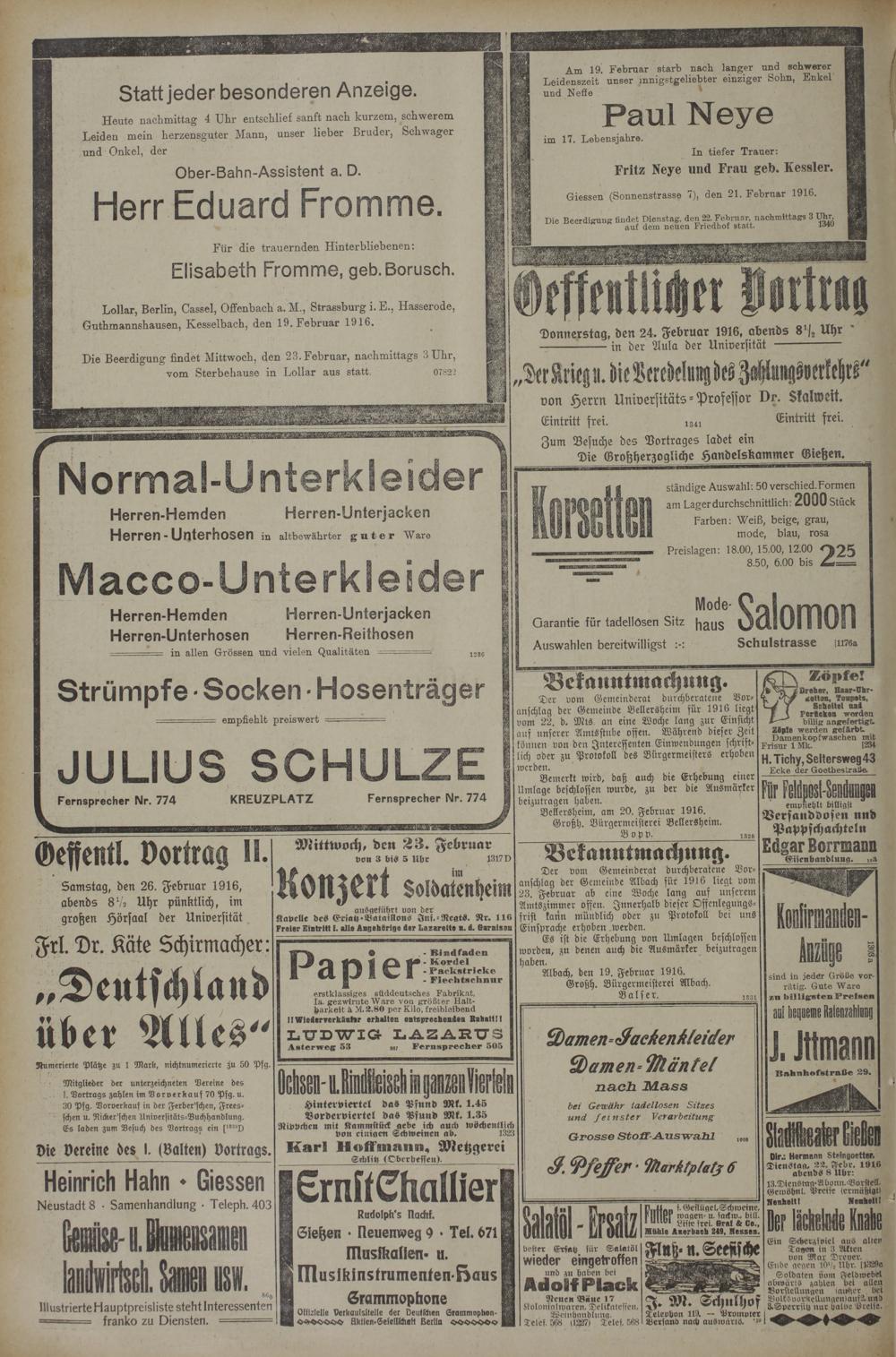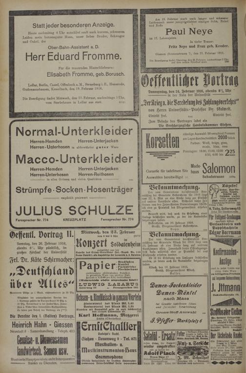 Giessen (Sonnenstrasse 7), den 21. Februar 1916.