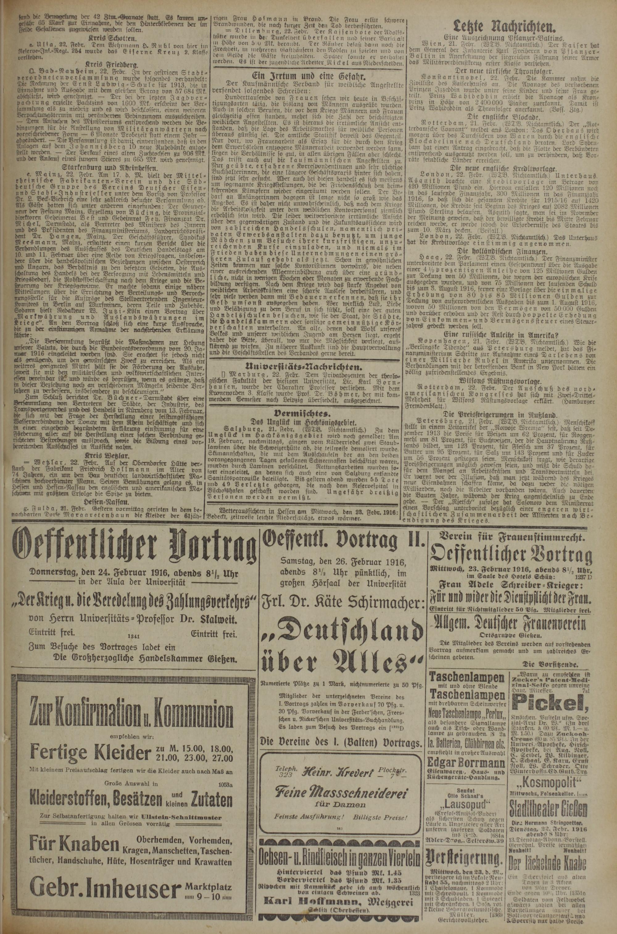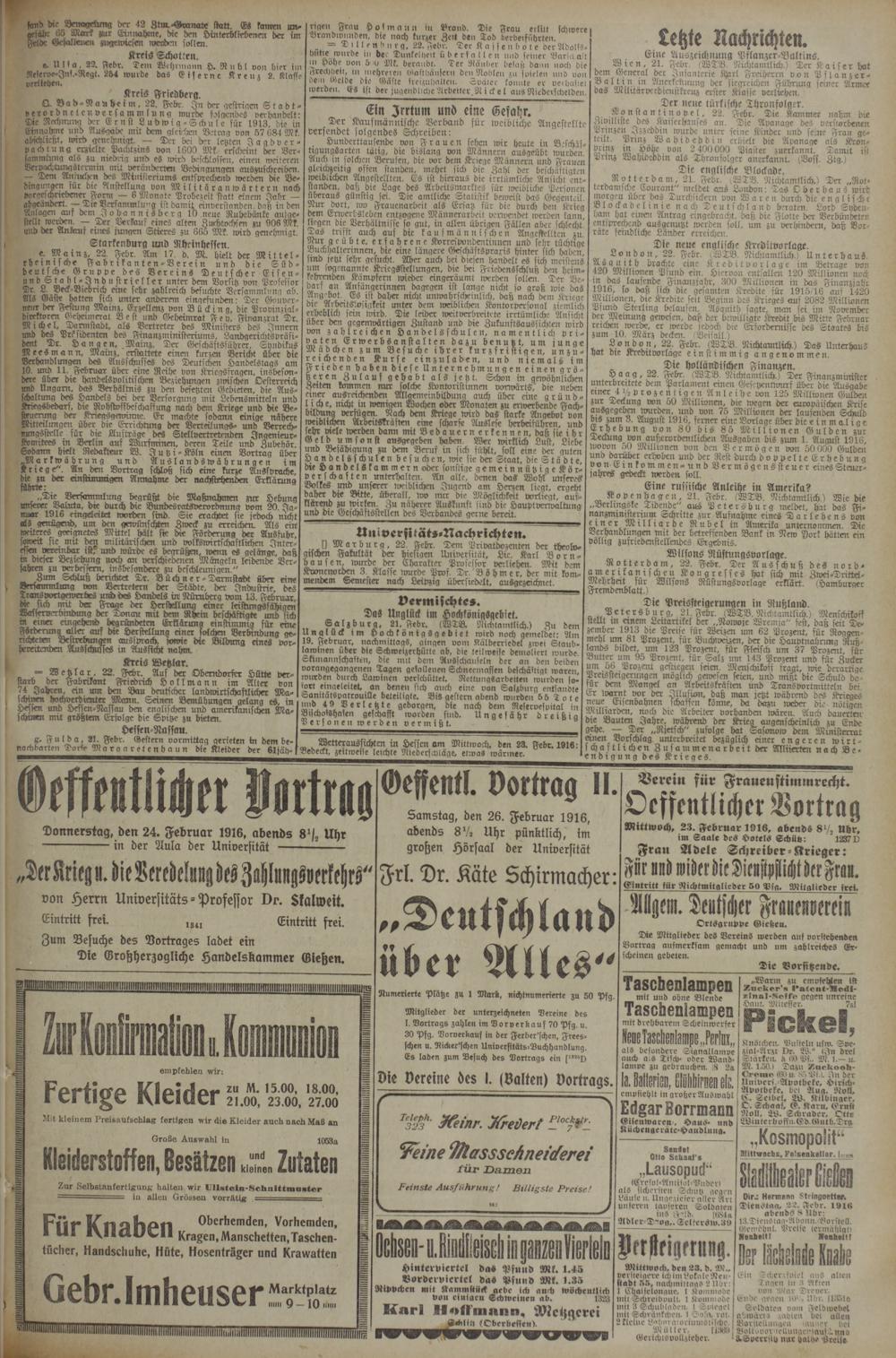 Dienstag, 22. Febr. 1916 abends S llbr: