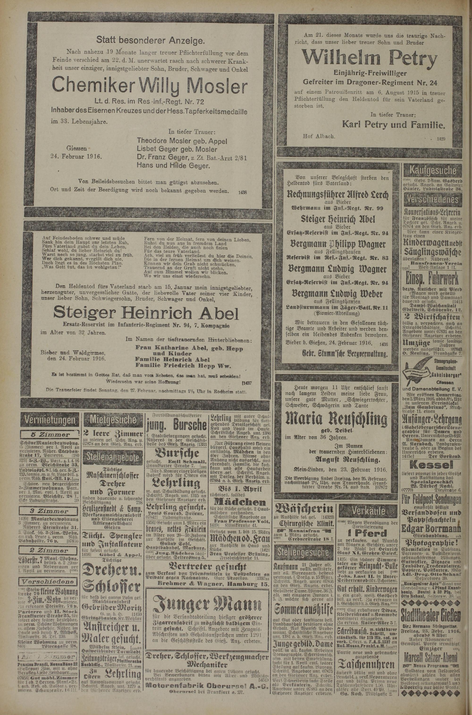 Bieber und Waldgirmes, den 24. Februar 1916.