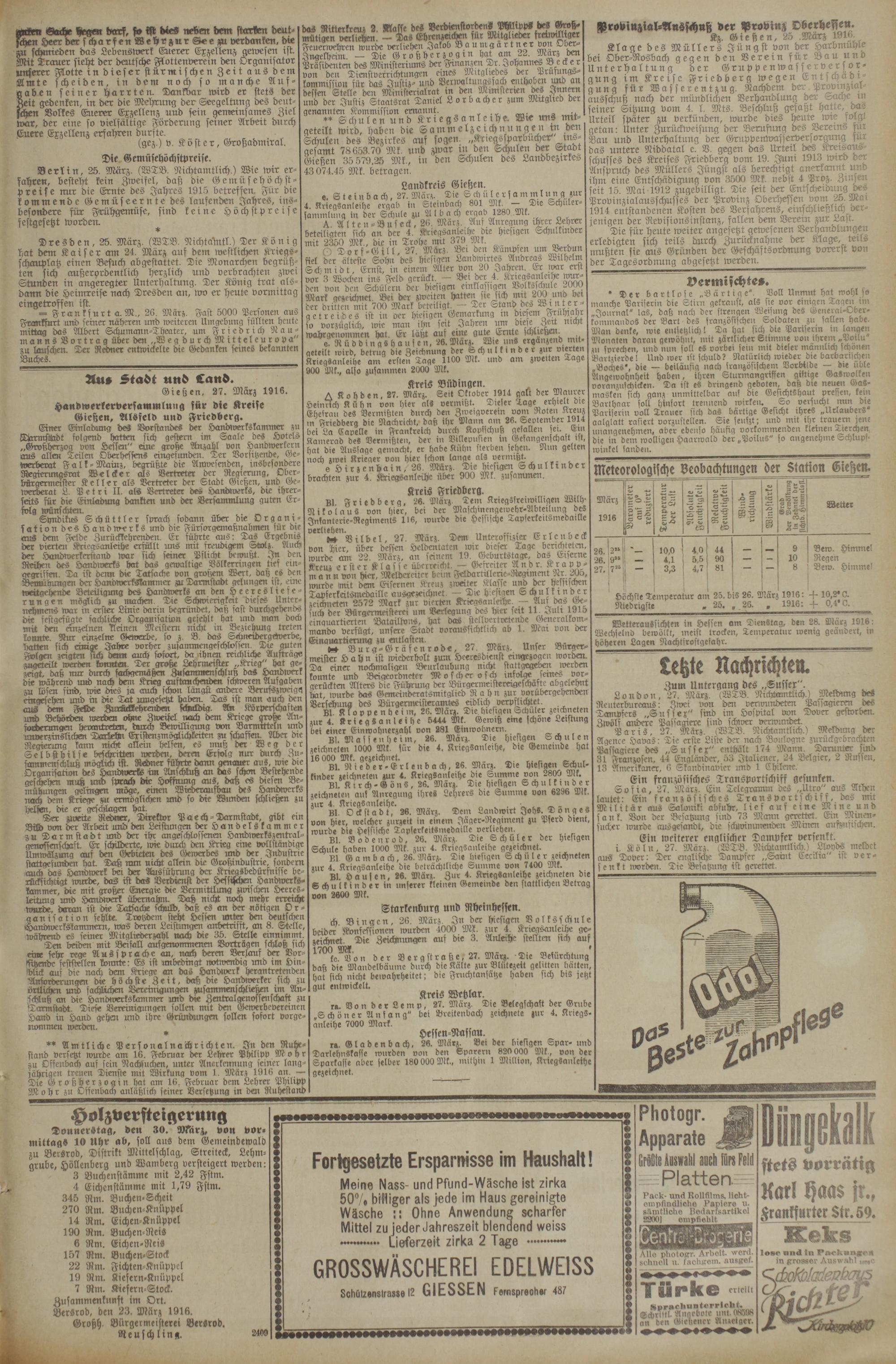 Gießen. 37. März 1916. Handwerkerversammlung für die Kreise Gießen, Alsfeld und Friedberg.