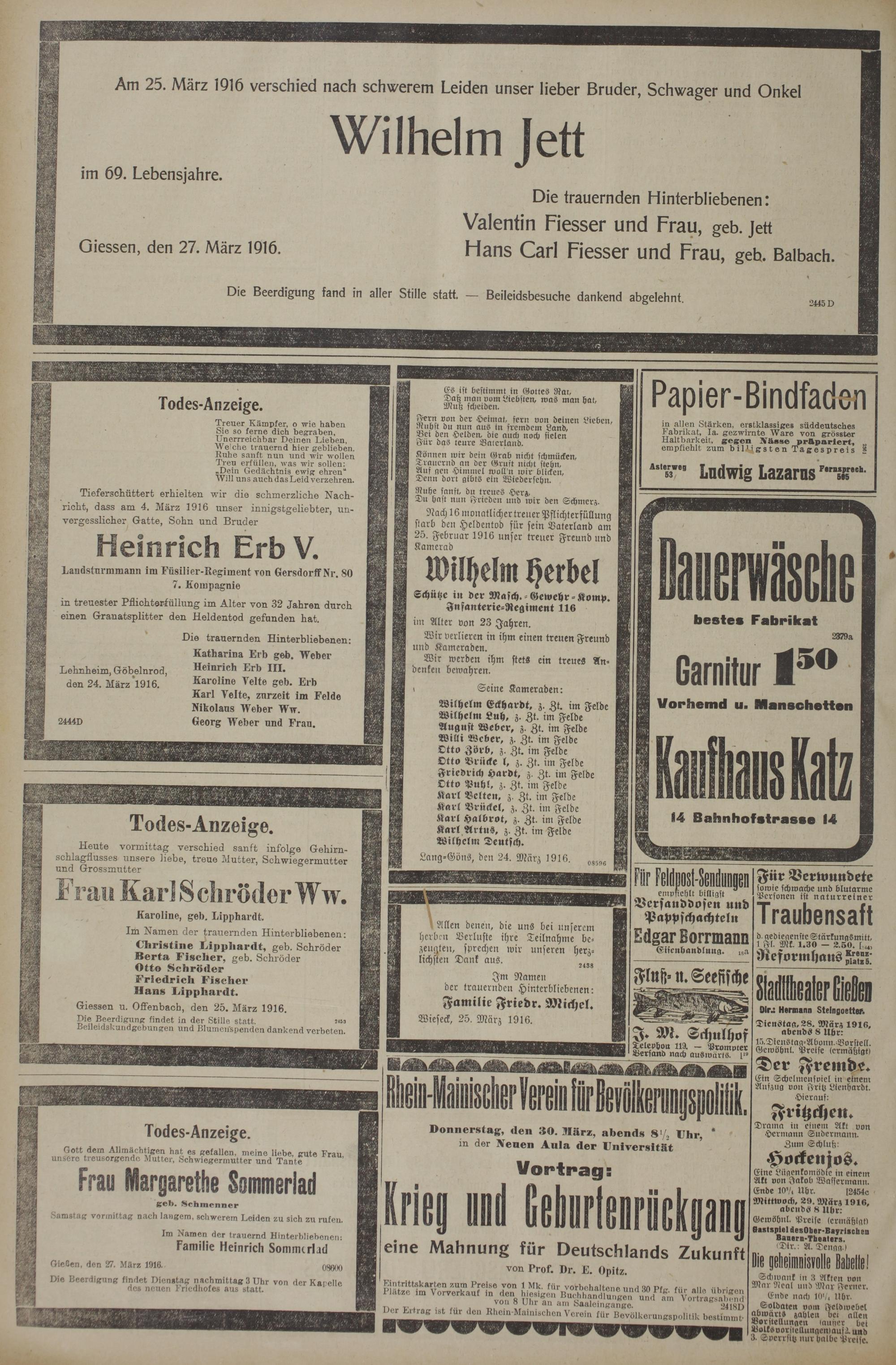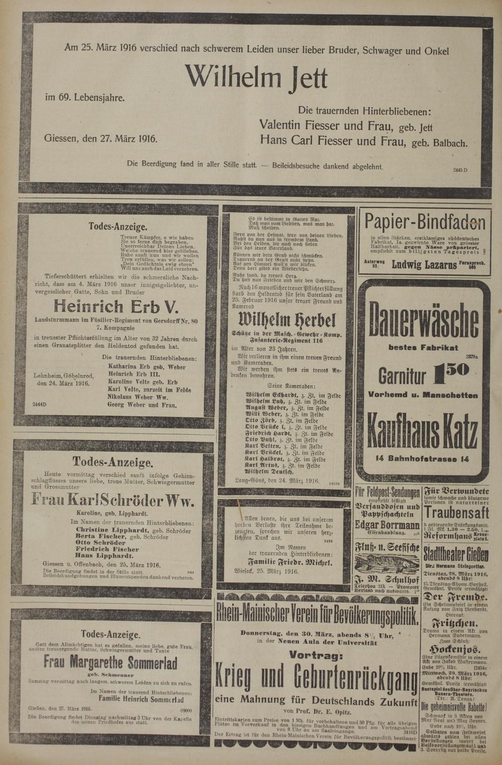 Giessen u. Offenbacb, den 25. März 1916.