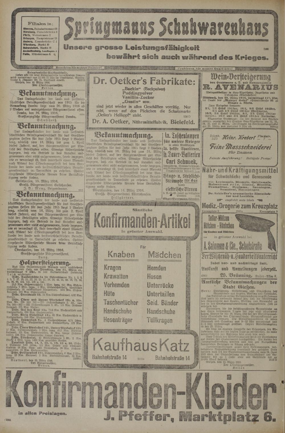 Krofdorf, den 13. März 1916.