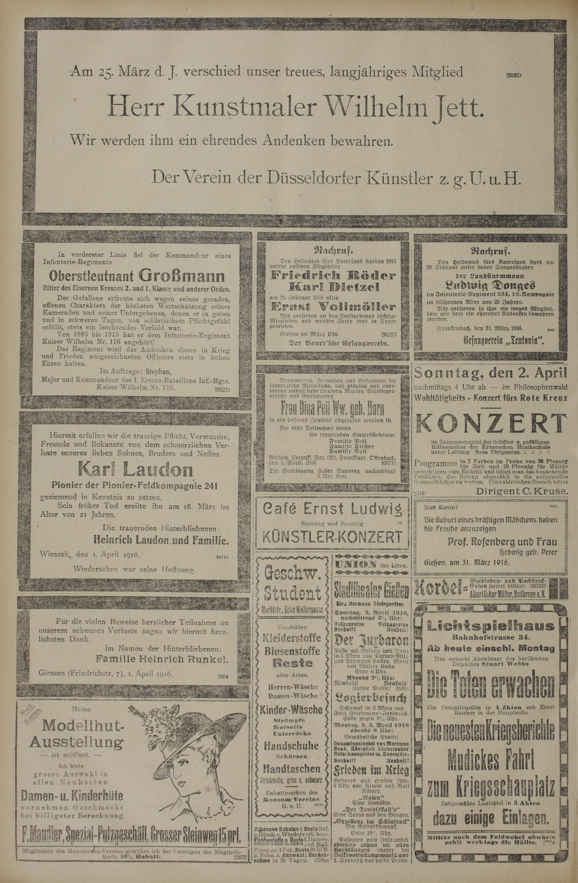 Giessen (Friedrichstr. 7), 1 . April 1916. 2 6 ö 4