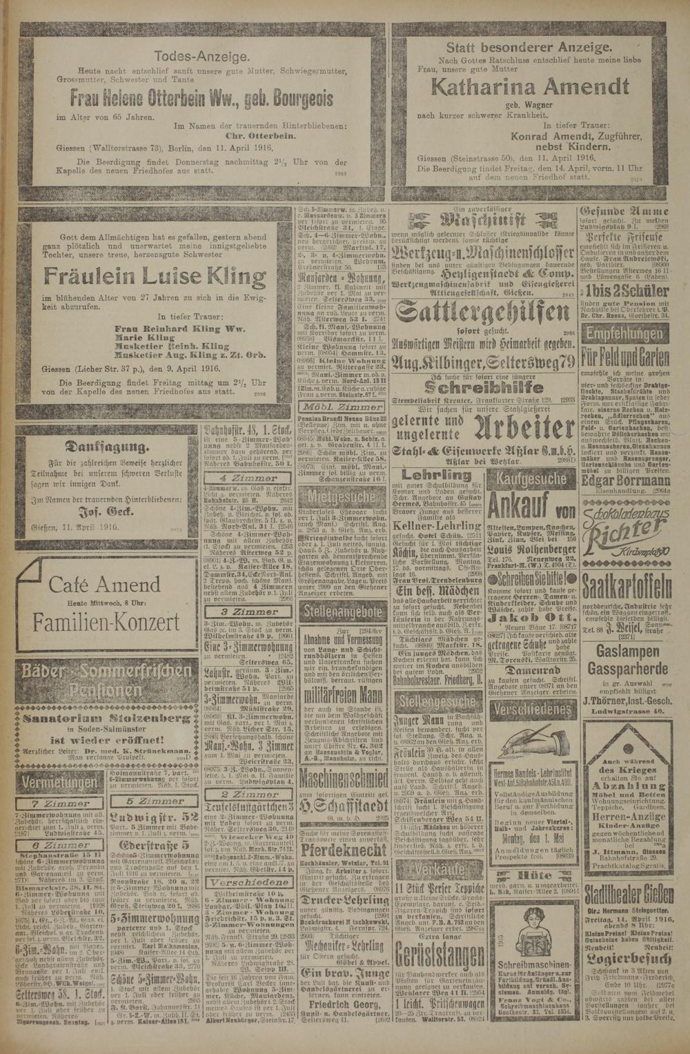 Giessen (Steinstrasse 50), den 11. April 1916.