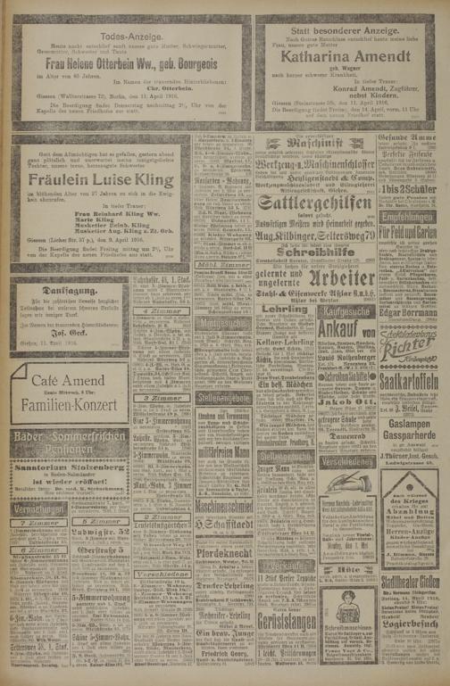 Giessen (Licher Str. 37 p.), den 9. April 1916.
