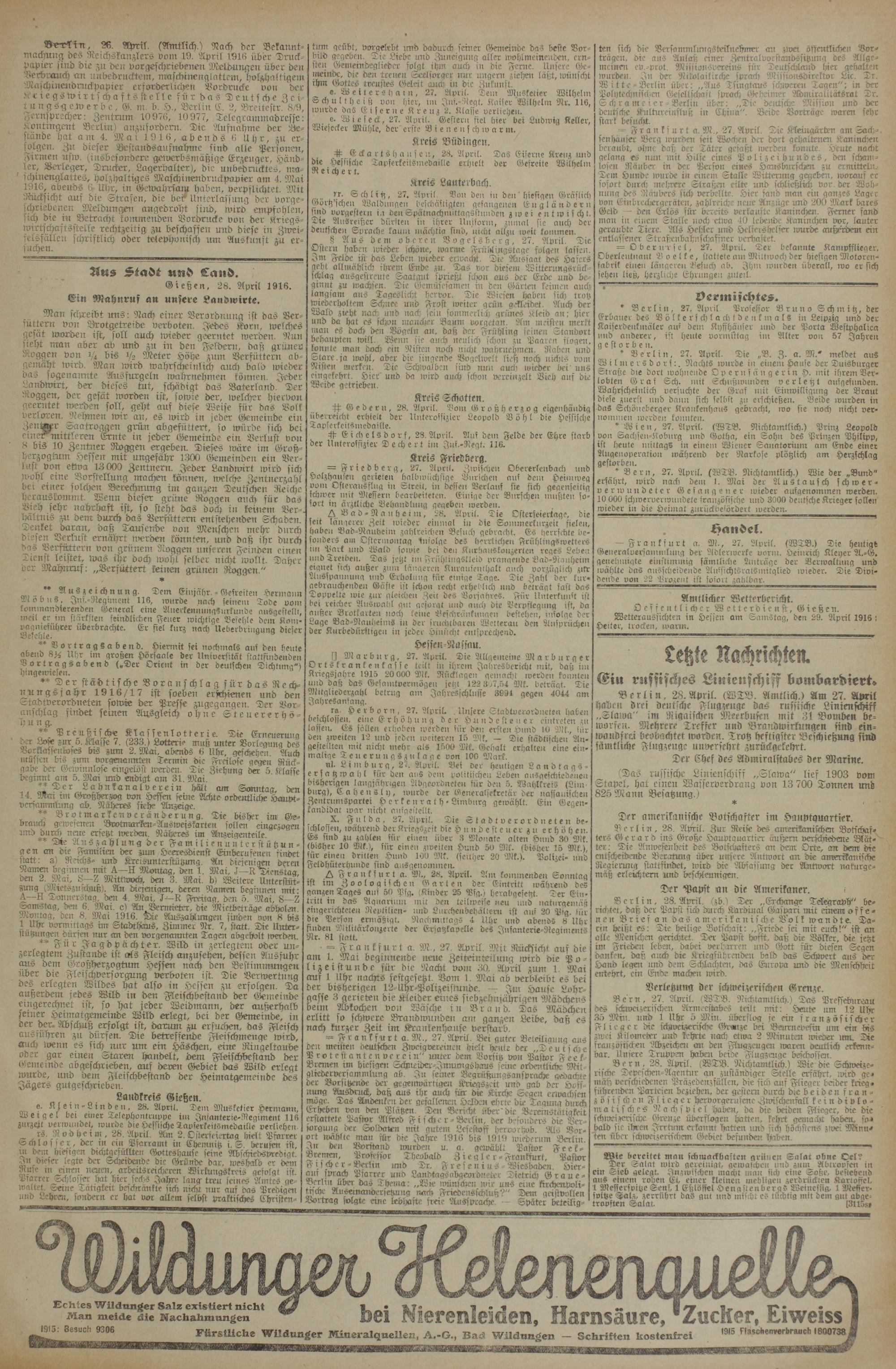 Gießen. 28. April 1916.